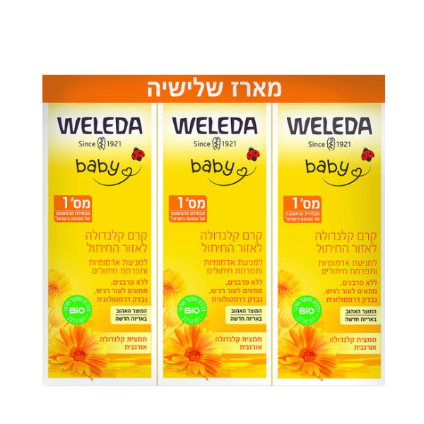קרם קלנדולה של Weleda הוא בחירה נבונה בזכות הפורמולה העדינה והטבעית עם קלנדולה, קמומיל ו-Zinc oxide שמעניקה הגנה, הרגעה והזנה – המומלץ ביותר על ידי מיילדות בגרמניה. המארז השלישייה מספק ערך מעולה ונוחות מקסימלית.