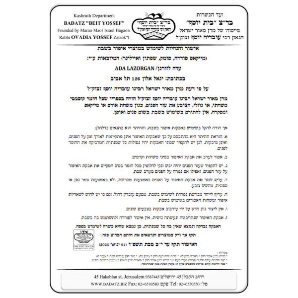 • מאושר לשימוש בשבת ע"י בד"צ בית יוסף