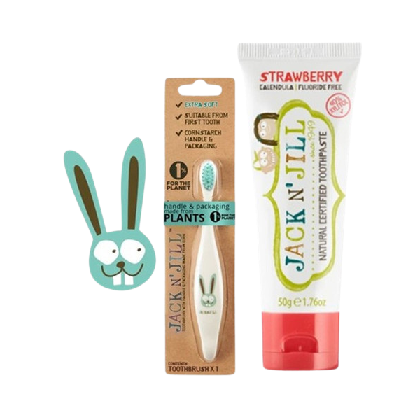 מארז משחת שיניים טבעית לתינוקות בטעם תות + מברשת שיניים בעיצוב ארנב | Jack And Jill