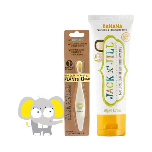 מארז משחת שיניים טבעית לתינוקות בטעם בננה + מברשת שיניים בעיצוב פיל | Jack And Jill