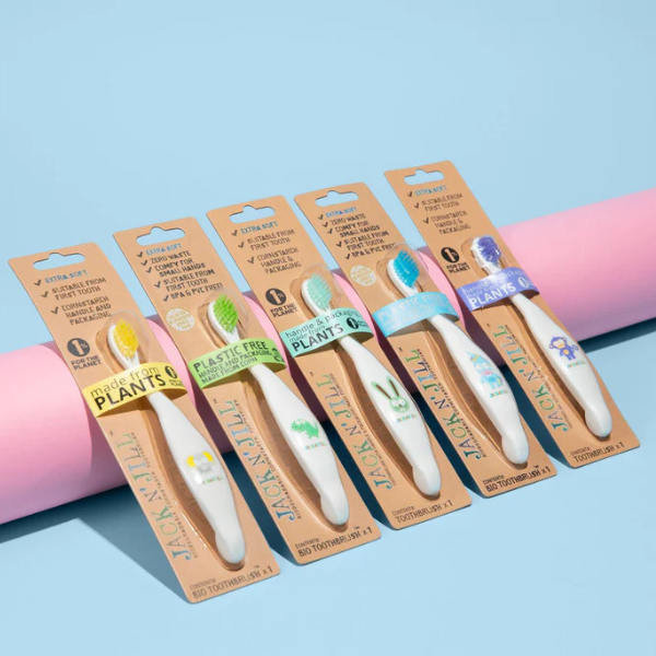 הכירו את מברשת השיניים האקולוגית לתינוקות ופעוטות של ג'ק אנד ג'יל (Jack And Jill) בעיצוב דינוזאור מגניב! המברשת המתקדמת הזו פותחה במיוחד כדי להעניק חוויית צחצוח נעימה, עדינה ובטוחה כבר מהשן הראשונה של הילד שלכם, תוך שמירה על הסביבה.
