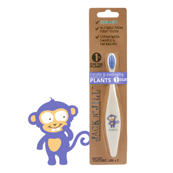 מברשת השיניים לילדים של ג'ק אן ג'יל בעיצוב קוף משעשע היא פתרון מושלם להורים המחפשים מוצר בטוח, ידידותי לסביבה ויעיל לניקוי שיני הילדים. המוצר המתקדם פותח במיוחד לשימוש מהשן הראשונה, ומעניק חוויית צחצוח נעימה ובטוחה לילדים הקטנים.