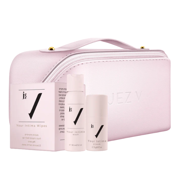 ערכת נסיעות המכילה שטיפה אינטימית, קרם לאיזור האינטימי ומגבונים לחים שאת יכולה לקחת איתך לכל מקום.