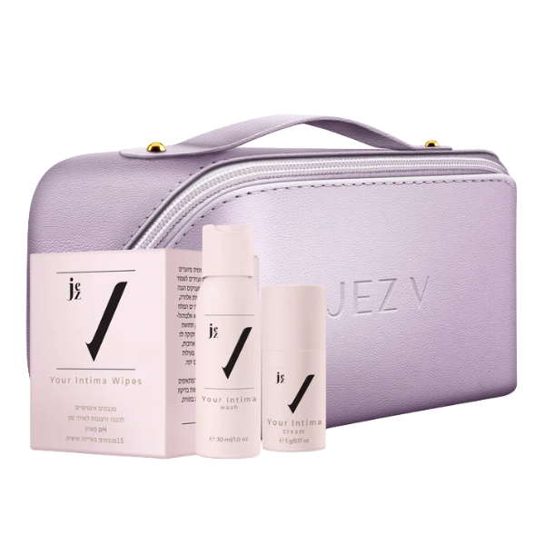 ערכת נסיעות המכילה שטיפה אינטימית, קרם לאיזור האינטימי ומגבונים לחים שאת יכולה לקחת איתך לכל מקום.
