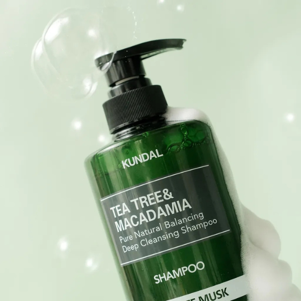 שמפו ללא מלחים 'עץ התה ומקדמיה' לניקוי עמוק וטיהור לקרקפת שומנית 500 מ"ל | KUNDAL