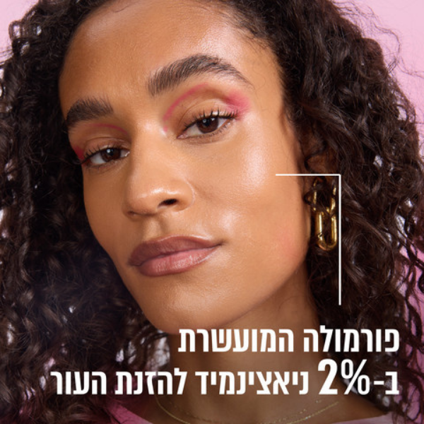 פורמולה עם 2% ניאצינמיד: מחזיקה את האיפור, מעניקה לחות ומראה עור מלא ומוצק.