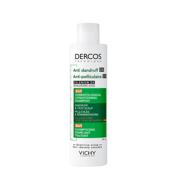 Dercos Anti-Dandruff 2 In 1 Conditioning Shampoo של וישי הוא בחירה נבונה בזכות הפורמולה המשלבת טכנולוגיית Selenium DS עם חומצה היאלורונית להענקת טיפול אפקטיבי בקשקשים, ריכוך עמוק ולחות ממושכת – לשיער מחודש, רך וללא קשקשים.