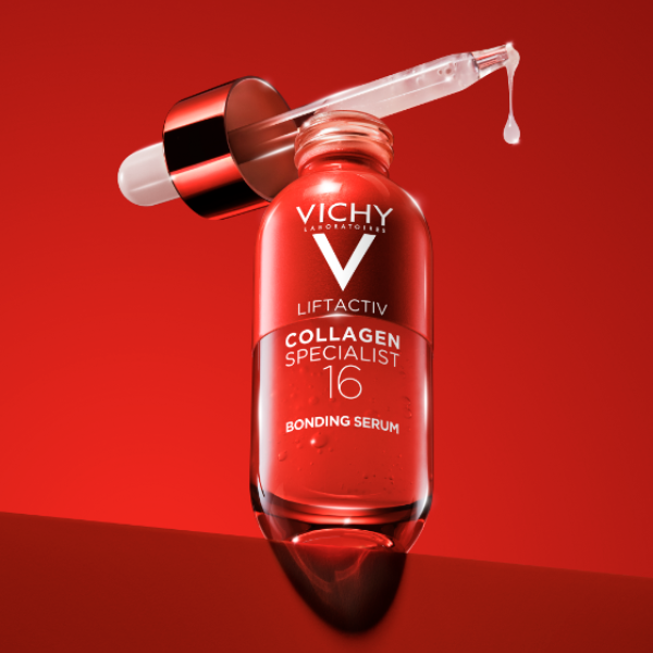 סרום קולגן ספיישליסט המסייע בתיקון 16 סימני גיל מסדרת 'ליפטאקטיב' מבית וישי. סרום מהפכני המסייע לפצות על אובדן הקולגן הטבעי בעור עם הגיל.